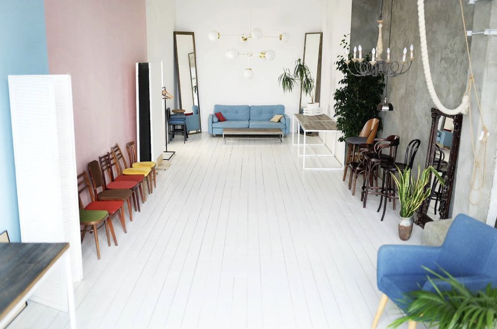70m² Уютное пространство в светлых тонах, белым полом, и пятью разными стенами. Большое окно 4×4 с широким подоконником, фактурная стена: серая с венецианской штукатуркой, белая кирпичная, белая, пастельные голубая и бежевая. Зал отлично подойдёт для проведения каталожной и портретной съёмок и проведения мероприятий до 30 человек. Для вас мы приготовили: — импульсный свет Godox AD600Pro (3шт.) — постоянный холодный свет — Godox SL60w (2шт.) — тёплый свет — Lowel Fren-L 650w (ARRI 650w) (5шт.) — Lowel Rifa EX88 1000w (ARRI 1000w) (2шт.) — Биколорный свет — Godox SZ200Bi (2шт.) Музыкальная колонка, рейл, гримерка, ширма, блекаут шторы, коврики для йоги, массажные столы, проектор, вентилятор, дым-машина, отражатели, бумажные и тканевые фоны, фрострамы, отпариватель, штатив Manfrotto, пледы, подушки, дополнительные стулья/столы и прочее. Прямые солнечные лучи с 6 до 12 часов. В студии свой туалет.Show more